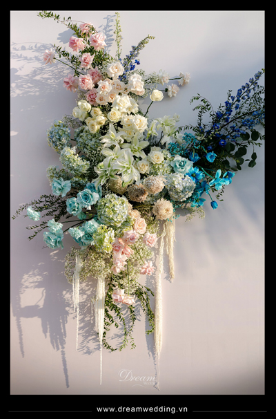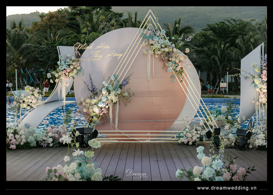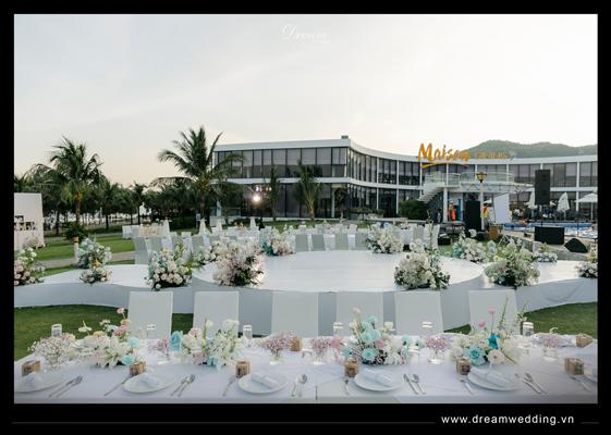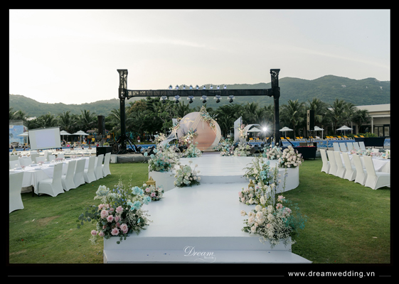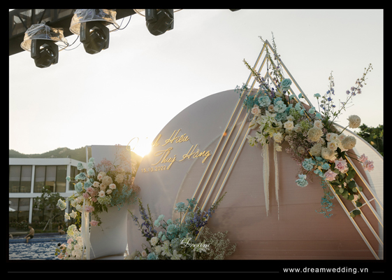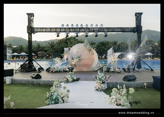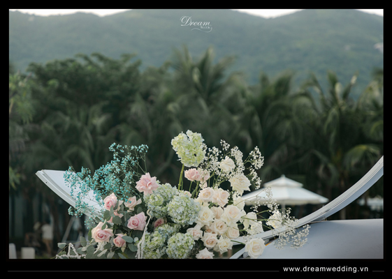 Giữa không gian thơ mộng của resort với 1 bên là biển, 1 bên là núi, Dream Wedding đã tạo nên một thế giới riêng cho hai bạn dưới sự chứng kiến của những người yêu thương yêu thương nhất khi thực hiện hoá lễ cưới thành một bản nhạc mang âm hưởng đại dương với gam màu chủ đạo là hồng pastel và xanh biển....
