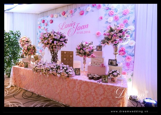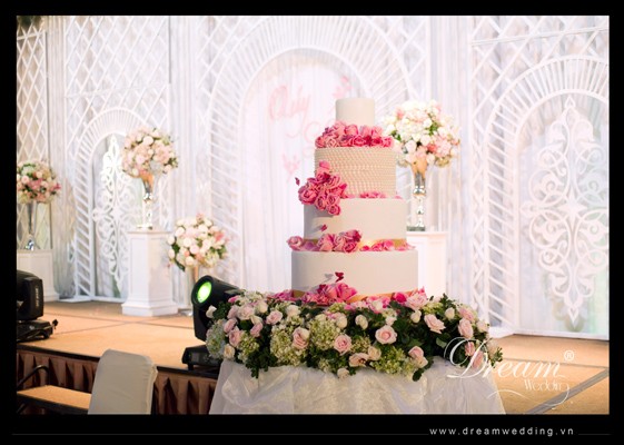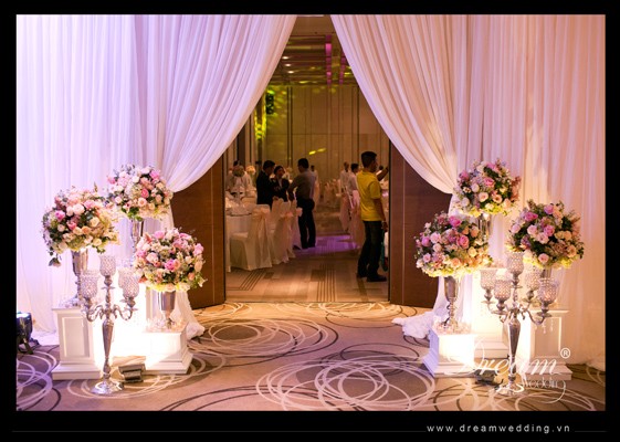Tiệc cưới tông hồng đậm, hồng nhạt tại Nikko Hotel