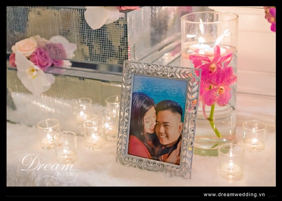 Trang trí tiệc cưới, trang trí đám cưới tại New World Hotel - khung hình nến trang trí trên bàn ký tên