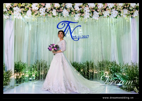 Đám cưới của CD Bảo Ngọc & CR Ngọc Thắng tổ chức tại Adora Q7 được Dream Wedding trang trí theo tông màu chủ đạo là trắng, hồng pastel kết hợp với xanh biển.