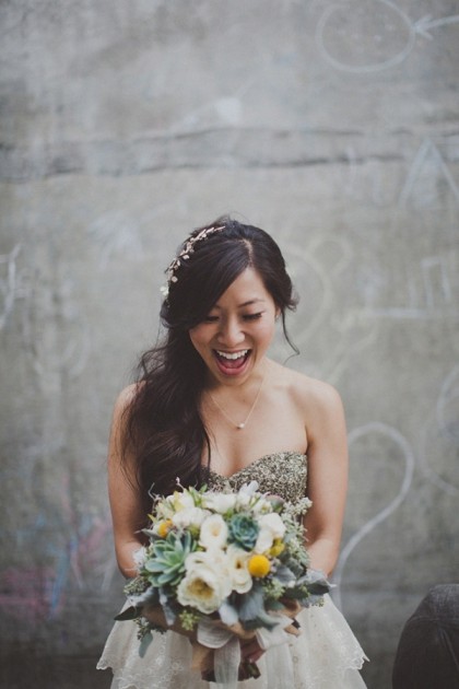 c. Áo cưới dài, rủ, màu sáng, và tôi sẽ cài hoa tươi trên tóc