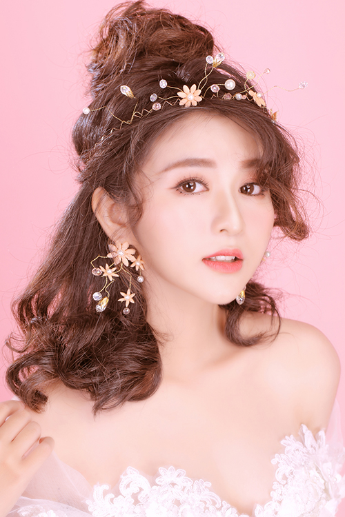Những phụ kiện đồng điệu với tông màu trang điểm dùng làm điểm nhấn cho mái tóc.