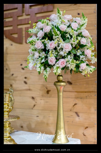 Trang trí lễ đính hôn, trang trí lễ gia tiên - hoa tươi trang trí trên bàn 2 họ