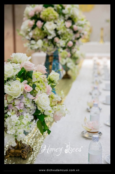 Trang trí lễ đính hôn, trang trí lễ gia tiên - hoa tươi trang trí trên các bàn tiệc