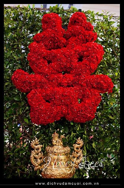Trang trí lễ gia tiên - trang trí chữ hỷ đỏ bằng hoa tươi
