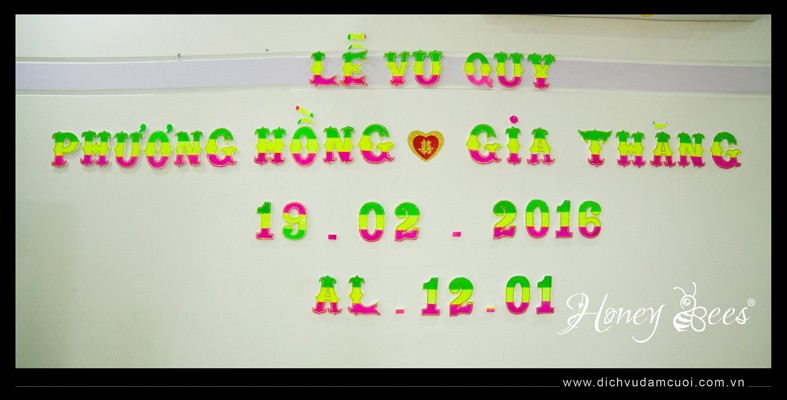 Tên CD & CR được dán lên tường với chứ 3 màu kèm theo ngày tháng âm lịch