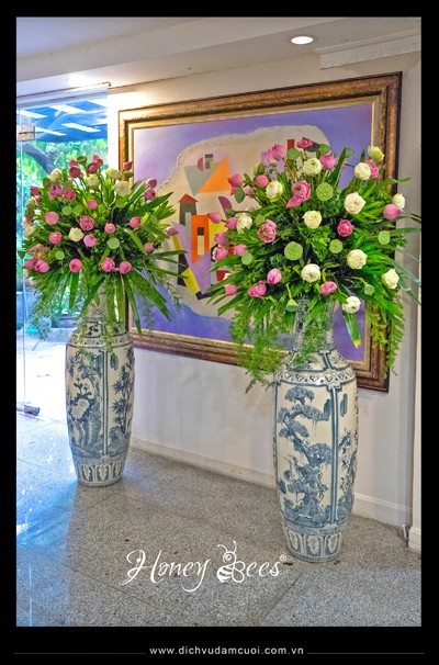 Trang trí lễ gia tiên theo chủ đề hoa sen, trang trí lễ vu quy - 2 bình hoa sen lớn đặt khu vực bên trong