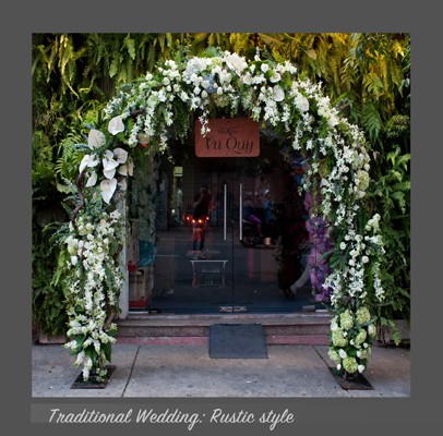Cổng hoa tươi bên ngoài được cắm theo phong cách tự nhiên