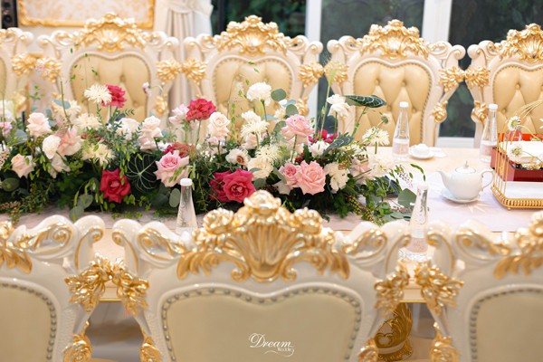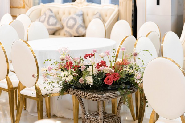 Lễ Tân Hôn của Tài & Vy là hiện thân hoàn hảo của vẻ đẹp ngọt ngào, sang trọng với concept “Rose Explosion” được lấy ý tưởng từ phong cách và tinh thần của hai bạn. Nó được thể hiện qua bảng màu tươi mới bởi sự kết hợp hài hoà giữa các sắc thái của hồng, trắng và xanh lá để tăng thêm sự ấm áp và lãng mạn cho không gian buổi lễ.