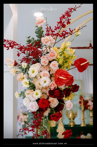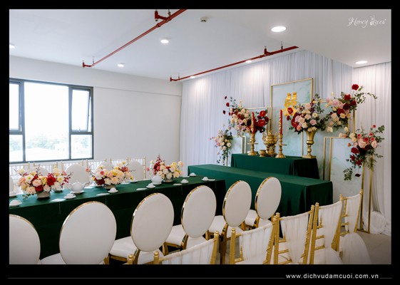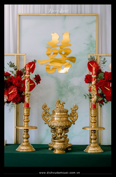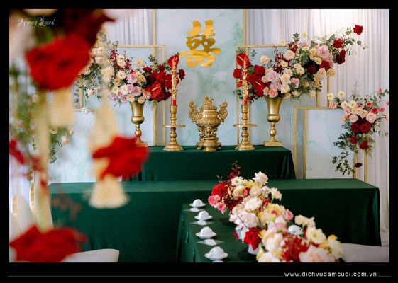 Chắc hẳn cả 2 anh chị sẽ không thể nào quên một lễ gia tiên được cách điệu theo tông màu sắc Xanh emerald mà anh thích cùng các loại hoa tươi được tuyển chọn và phối một cách khéo léo để buổi lễ được rực rỡ và tươi vui nhất như ước muốn của anh chị....