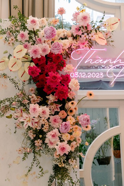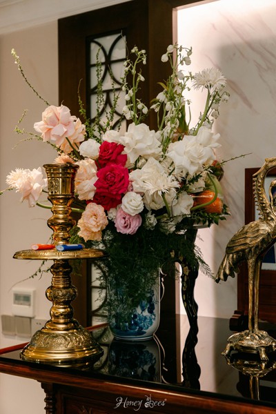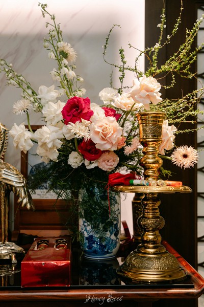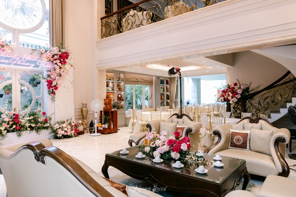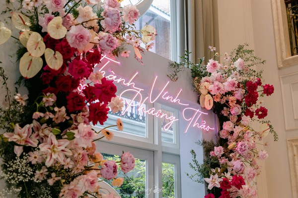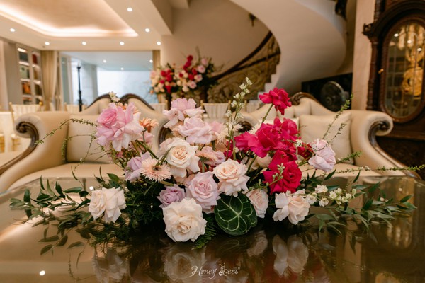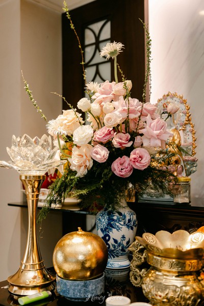 Gói gọn bằng sắc màu kỷ niệm và đong đầy cảm xúc, Lễ Gia Tiên của Vinh & Thảo được kể lại bằng tất cả sự rung động và say mê. Với vẻ đẹp dịu dàng và tinh tế của gam màu hồng pastel, điểm xuyến thêm chút sắc trắng, cam, kem nhạt … đã tạo nên một tổng thể tựa như lời thì thầm của mùa xuân - Ngọt ngào, trong trẻo và mộng mơ. Bên cạnh đó, từng ngóc ngách của ngôi nhà đều được Honey Bees ngụ ý sắp xếp đầy tính sáng tạo cũng đủ để đánh thức mọi giác quan của những vị khách tham dự.