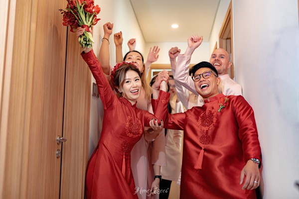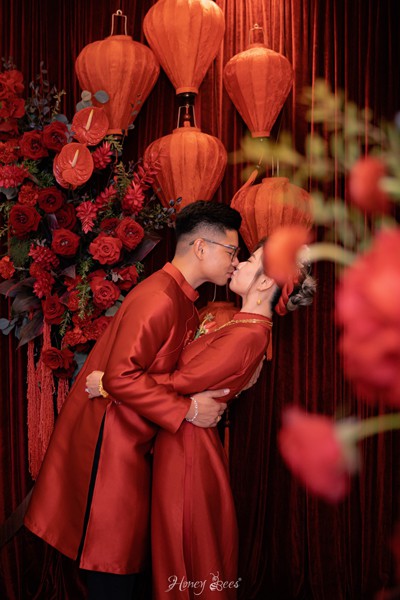 Gặp Trung & Monica vào những ngày cuối năm, chúng mình cảm nhận được sự yêu thương và tôn trọng đối với những giá trị văn hoá của quê hương, đất nước từ hai bạn. Cũng chính những lý do đó, concept buổi Lễ Gia Tiên mà Honey Bees tạo ra cho hai bạn đều mang âm hưởng của một buổi tiệc Trung Hoa rực rỡ được thể hiện qua bảng màu “đỏ” quen thuộc cho đến những chi tiết mang nhiều điểm nhấn của vùng đất tinh hoa này. Đâu đó trong những “idea” tưởng chừng như rất hiện đại, Honey Bees đã điểm xuyến thêm những chiếc đèn lồng Hội An để giữ lại một chút nét đẹp cổ điển của truyền thống Việt Nam.