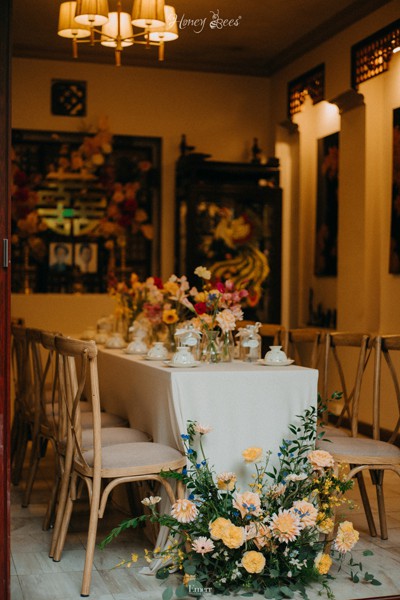 Không chỉ dừng lại ở bảng màu sắc mà khi bước vào ngôi nhà có phần hoài cổ của cô dâu Quyên, mọi người sẽ cảm nhận được một nét cá tính và độc đáo khi mỗi chi tiết trang trí đều được thiết kế một cách tỉ mỉ và tinh tế để tạo nên một không gian hài hòa và riêng biệt. Không những thế, bằng đôi mắt nghệ thuật và đôi tay tài hoa của mình, Honey Bees không những tạo ra một buổi lễ đẹp mắt mà đó còn là một hành trình mới đầy ý nghĩa dành cho Kiên & Quyên.