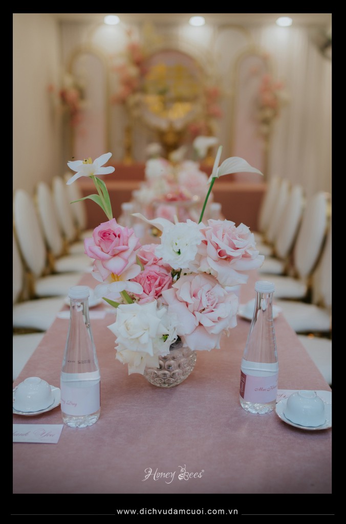 Đó là vào một ngày nắng đẹp của Sài Gòn, hương vị ngọt ngào của tone hồng pastel đã đưa chúng ta đến với không gian buổi Lễ Gia Tiên của Khanh & Duy. Ở đó, có một tình yêu tràn đầy sức sống và lãng mạn được Honey Bees vun đắp bằng sự ngọt ngào của những đóa hồng như một cách thức để thể hiện tình yêu của hai bạn một cách nhẹ nhàng và tinh tế đến với người thân, bạn bè và những người mà Khanh & Duy trân quý nhất. Tất cả những cảm xúc của ngày hôm ấy như gợi nhắc chúng mình nhớ về hành trình yêu thật trọn vẹn của Khanh & Duy.