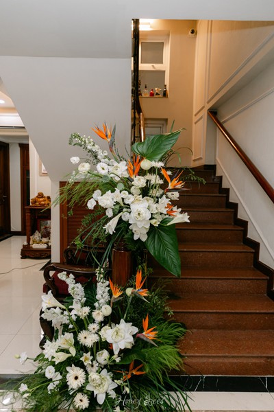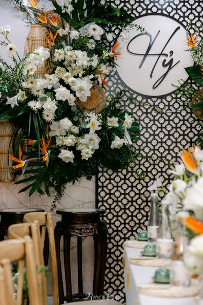 Bước vào ngôi nhà của Hà, chắc chắn mọi người sẽ yêu ngay những họa tiết được thiết kế mang phong cách indochine - nhẹ nhàng nhưng cuốn hút đến vô cùng. Với vẻ đẹp nhẹ nhàng và nền nã của hoa sen, điểm thêm chút ánh cam của hoa thiên điểu đã tạo nên một không gian không quá cầu kỳ, mà ngược lại còn tôn lên được những nét đẹp truyền thống Việt. Từ buổi lễ của Dũng & Hà, chúng ta có thể cảm nhận được những thông điệp về sự kết nối giữa gia đình và tình yêu mà chúng mình mang lại trong buổi Lễ Vu Quy của hai bạn. Hy vọng rằng, mối lương duyên sẽ đưa Honey Bees tiếp tục được đồng hành cùng nhiều cặp đôi đáng quý hơn nữa trong những năm tiếp theo.