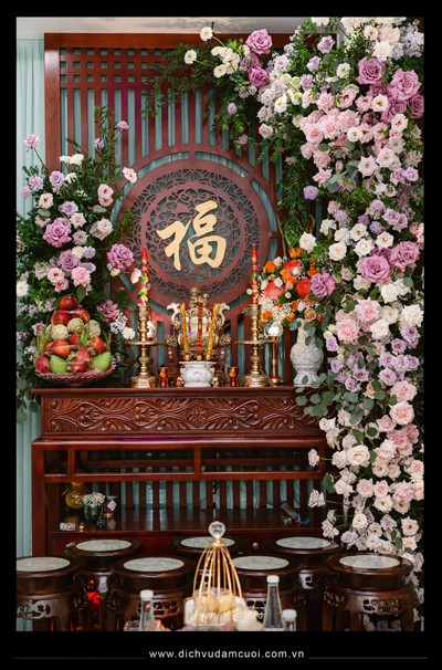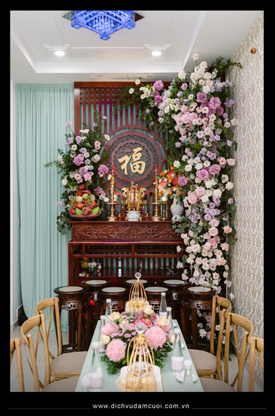 Trang trí lễ gia tiên, trang trí lễ vu quy, trang trí lễ đính hôn, trang trí lễ tân hôn, trọn gói mâm quả trong ngày cưới