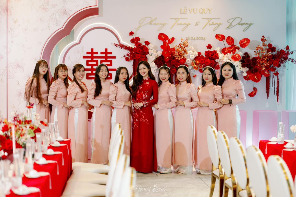 Với những đôi tim mê đắm sự ngọt ngào và lãng mạn của tone đỏ truyền thống, bất chợt mọi người sẽ cảm nhận được sự sắp xếp tinh tế giữa các tone màu với nhau trong buổi Lễ Vu Quy của Dương & Trang vì đó còn được ví như một sự phản chiếu chân thật nhất cho chính câu chuyện tình yêu đầy viên mãn và hạnh phúc của hai bạn.