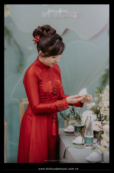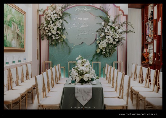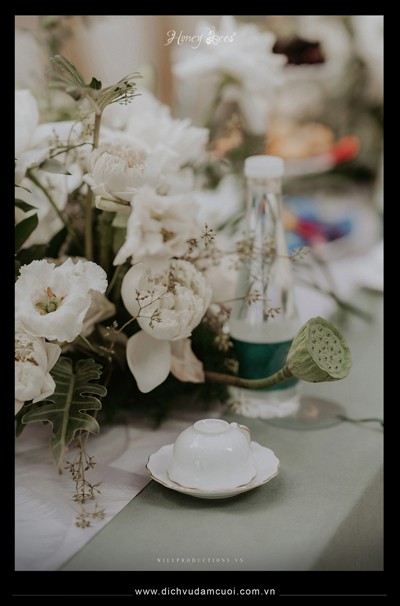 Nhân duyên đã dẫn lối chúng mình đồng hành cùng cặp đôi Vũ & Thảo để tạo nên chiếc Lễ Gia Tiên vừa mang nét đẹp truyền thống Việt Nam, vừa hoà lẫn một chút phong cách hơi hướng hiện đại và thanh lịch. Chính vì thế, Honey Bees đã sử dụng những chất liệu dân gian như tre, gỗ … kết hợp với sắc xanh từ hình ảnh lá sen làm điểm nhấn cho buổi lễ thêm phần độc đáo, sống động.