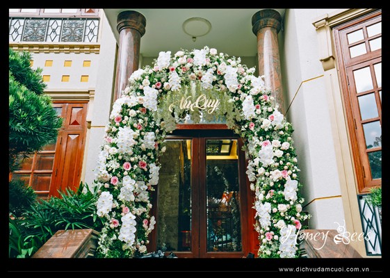 Trang trí lễ gia tiên, trang trí lễ vu quy - cổng hoa tươi lớn đặt ở khu vực cổng chính