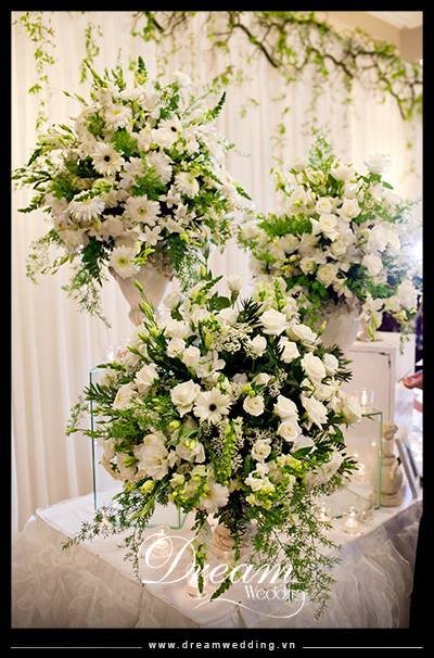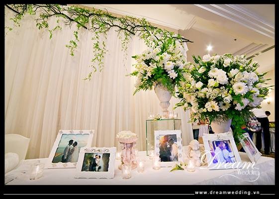 Tông màu trắng, xanh là tông màu chủ đạo trong đám cưới Minh Toàn & Mai Phương tổ chức tại khách sạn 5 sao Rex. Với thiết kế riêng cùng với yêu cầu của CD & CR, Dream Wedding đã biến không gian đón khách của sảnh tiệc cưới thành 1 khu vườn tình yêu với những mảng màu xanh của hoa lá, cỏ cây. Tạo nên những không gian thật đẹp, lãng mạn để khách đến dự tiệc lưu lại những kỉ niệm đẹp trong ngày cưới anh, chị. Mời các bạn tham khảo 1 số hình ảnh đẹp trong ngày cưới.