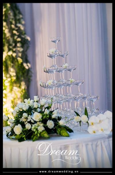 Trang trí nhà hàng tiệc cưới - trangt trí tháp ly champagne