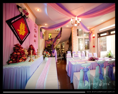 Công ty dịch vụ đám cưới Honey Bees xin giới thiệu 1 số hình ảnh trang trí nhà theo tông màu tím hồng