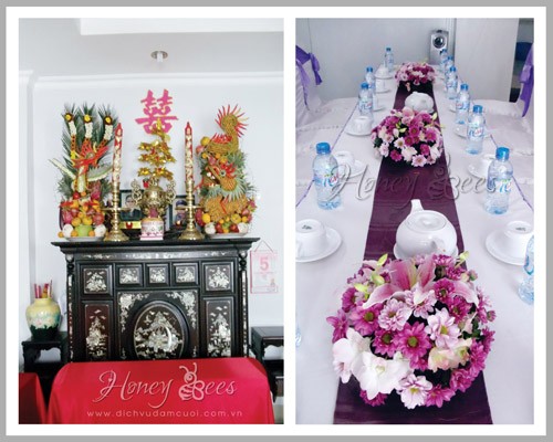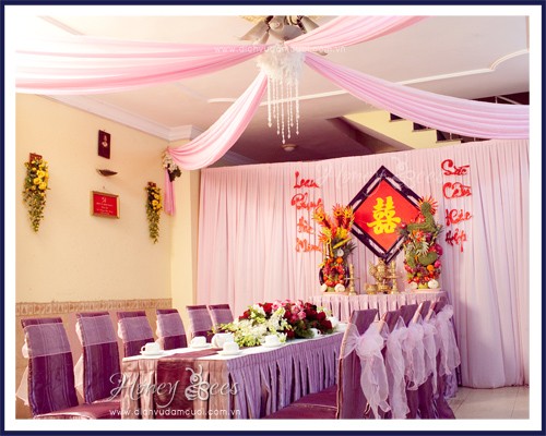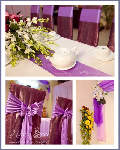 Công ty dịch vụ đám cưới Honey Bees xin giới thiệu hình ảnh trang trí nhà trong ngày cưới theo tông màu tím