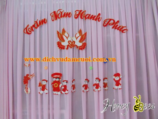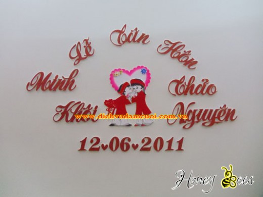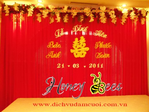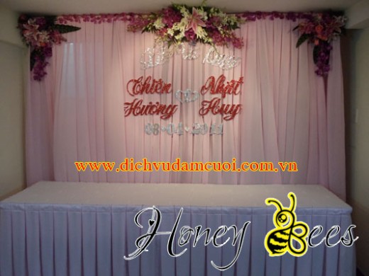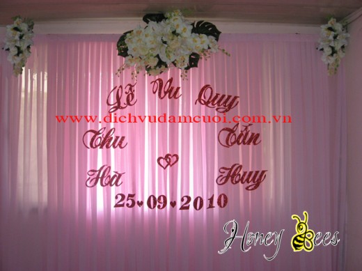 Công ty dịch vụ đám cưới Honey Bees giới thiệu 1 số hình ảnh trang trí tên cô dâu - chú rể, hình trang trí trên phông màn