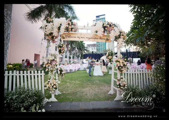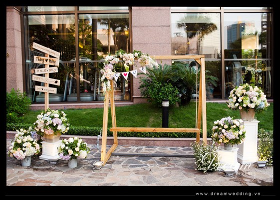 Cô dâu tìm đến Dream Wedding với mong muốn được trang trí tiệc cưới của mình ngoài trời theo phông cách mộc mạc, giản dị hài hòa với thiên nhiên nhưng cũng không kém phần sang trọng. Với ý tưởng là khi khách bước vào không gian đãi tiệc như bước vào không gian của ngôi nhà riêng của Thăng & Hồng.