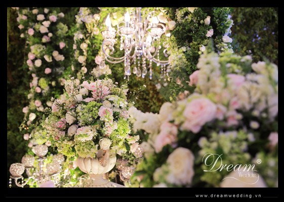 Tổ chức tại sảnh tiệc cưới sang trong nhà hàng Adora Ngô Gia Tự, Q.5, đám cưới Tony & Kim được Dream Wedding thiết kế và trang trí theo tông màu chủ đạo là trắng, xanh cốm, hồng pastel. Hoa tươi trang trí các khu vực trang trí như bàn ký tên, bàn gallery, phông chụp hình và sân khấu được cắm theo phong cách tự nhiên, mộc mạc. Sau đây là một số hình ảnh đẹp trong đám cưới, mời các bạn tham khảo: