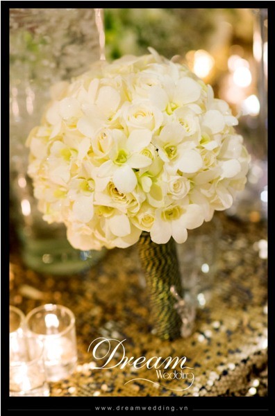 Hoa cầm tay CD theo tông màu trắng làm chủ đạo
