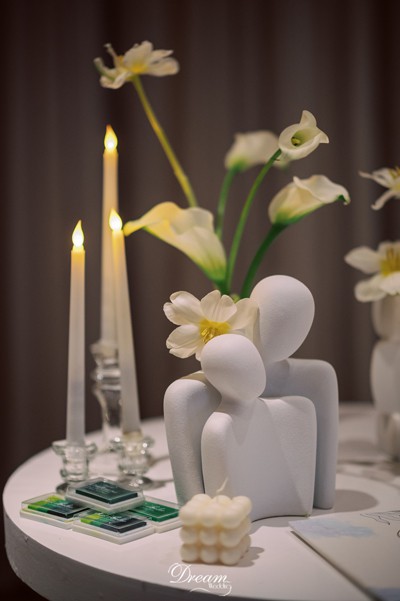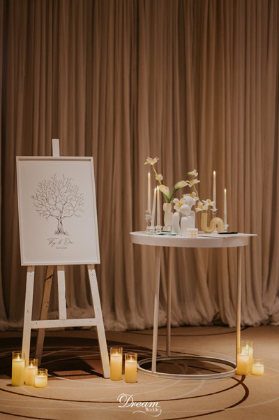 Để tạo được chiếc “vibe” đúng như Đức & Thy mong muốn, chúng mình đã chăm chút tỉ mỉ toàn bộ các hạng mục trang trí để tạo nên một không gian đậm chất truyền cảm - Một nơi, ai ai cũng có thể cảm nhận được sự thân mật, tinh tế và sang trọng như một cách để Đức & Thy thể hiện sự trân trọng cho những kỷ niệm khó quên trong hành trình yêu của cả hai.