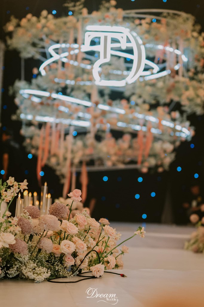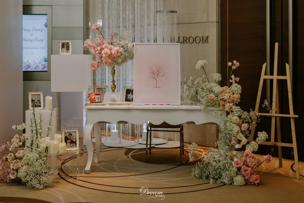 Sự giao thoa giữa gam màu hồng nhẹ nhàng cùng sự hiện đại trong cấu trúc thiết kế không chỉ tạo nên một buổi lễ ấn tượng, mà còn là một dịp để Trang & Dương cũng như khách mời thấu hiểu rõ hơn về tính cách và sở thích của hai bạn. Từ ngày đầu gặp gỡ và làm việc, Trang đã chia sẻ với tụi mình rằng cô ấy yêu lắm gam màu hồng, nhưng điều quan trọng nhất của tụi mình là phối màu như thế nào để gam màu “quốc dân” này mang được sự nổi bật và độc đáo như mong muốn của Trang & Dương là một bài toán rất khó.