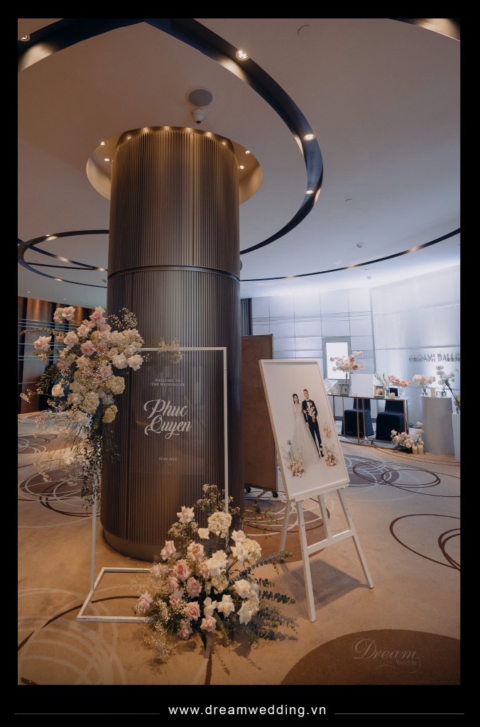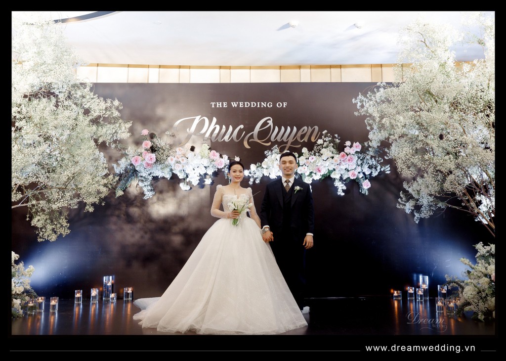Trong tiệc cưới của CD Tú Quyên & CR Hoàng Phúc tổ chức tại sảnh tiệc cưới của Hotel Nikko Saigon được Dream Wedding thiết kế và trang trí với màu trắng của hoa tưới làm màu chủ đạo kết hợp với điểm nhẹ nhàng của màu hồng.