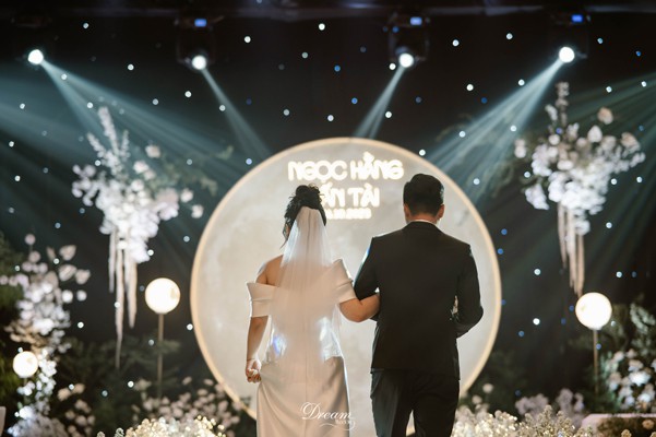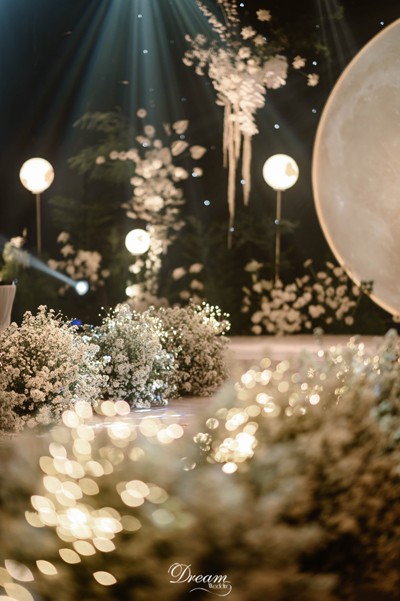 Như một luật hấp dẫn, khu vực sân khấu trở nên lãng mạn hơn với với đẹp thơ mộng của “mặt trăng” cùng ánh sáng lấp lánh, dịu dàng của những vì sao và hoa tươi đã mang đến một không gian vừa đủ để khẽ chạm vào trái tim của những vị khách quý. Đặc biệt, “Endless love with the moon” còn là sự khởi nguồn tốt đẹp cho hành trình yêu thương và hạnh phúc của hai bạn.
