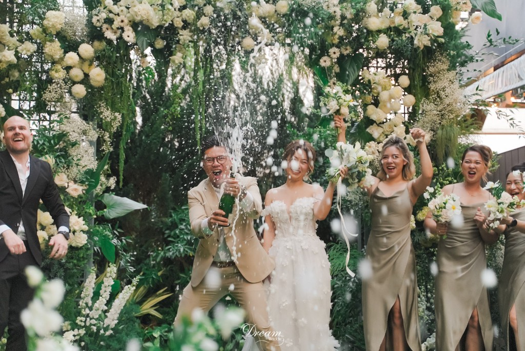 Và ngày hôm đó, tất cả sự ngọt ngào và lãng mạn Dream Wedding đều dành cho Trung & Monica khi không gian buổi lễ được lấy sắc xanh làm chủ đạo, Dream Wedding đã đưa cặp đôi bước vào thế giới của thiên nhiên, nơi mà hoa lá và cây cỏ đâm chồi nảy nở như đang gửi lời chúc phúc đến hai bạn. Và để chứng kiến một lễ cưới chỉn chu, ý nghĩa và đầy ắp những khoảnh khắc ngọt ngào như thế cũng chính là niềm hạnh phúc to lớn của tụi mình.