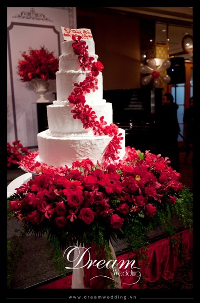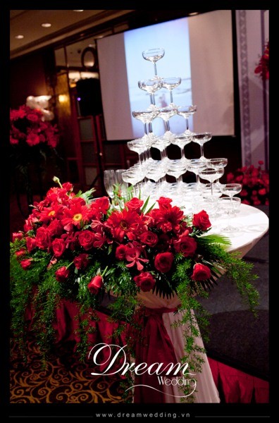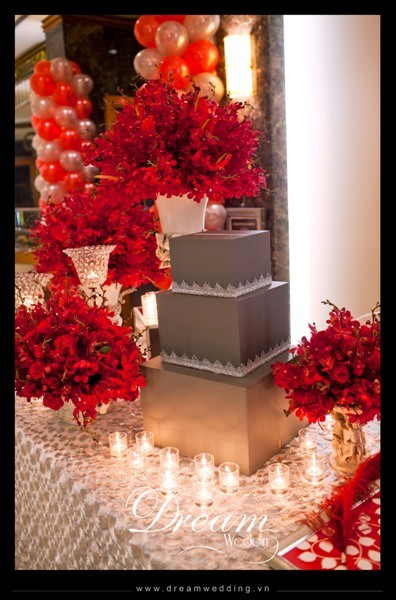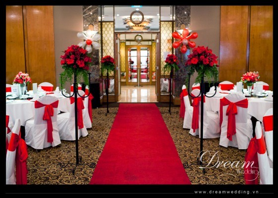 Trang trí tiệc cưới tại New World với tông màu đỏ rực