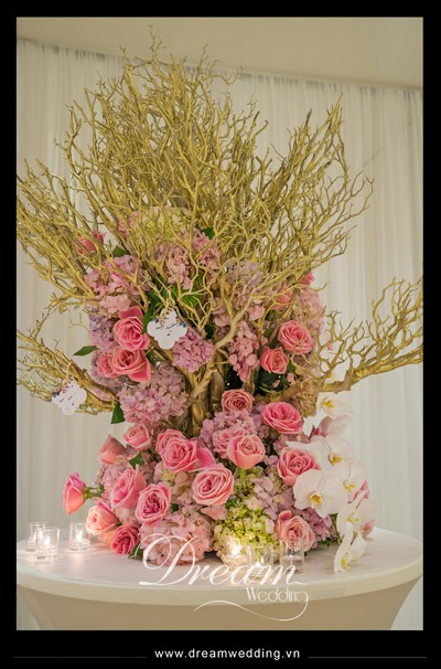 Trang trí tiệc cưới, trang trí đám cưới tại Nikko Hotel - cây treo lời chúc của người thân dành cho CD & CR