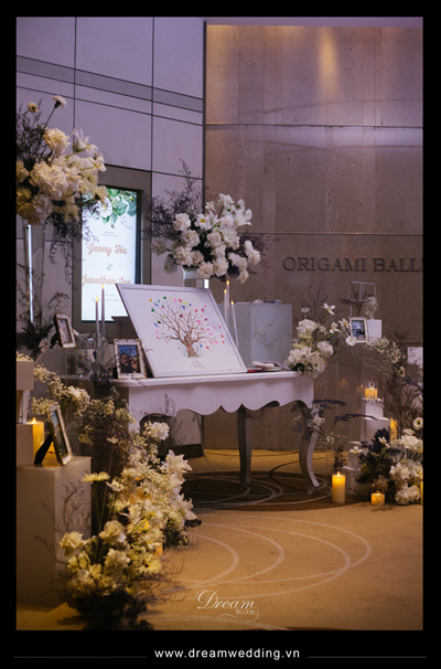Thật tuyệt vời khi Dream Wedding được trao trọng trách tạo nên những ký ức đáng nhớ cho cặp đôi Jonathan & Jenny trong buổi tiệc tối thân mật. Và Nikko SaiGon Hotel ngày hôm đó như tiếp thêm sự lãng mạn và huyền bí cho buổi tiệc khi được Dream Wedding mang vẻ đẹp quý phái của tông màu đen và sự mềm mại của vô số loài hoa kết hợp cùng những đàn bướm bay lượn đan xen vào nhau.