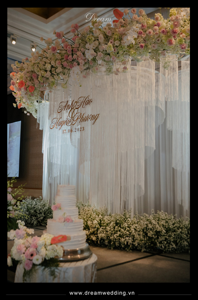 Và rồi chính sự mộng mơ và lãng mạn ấy lại là điểm đến cuối cùng trong hành trình yêu của Hào & Phương. Với mong muốn truyền tải hết câu chuyện tình yêu của hai bạn, chúng mình đã mang đến một lễ cưới đầy ắp sự ngọt ngào của hoa tươi với tone màu hồng pastel và trắng làm chủ đạo đã biến hoá một không gian đơn giản trở nên sang trọng đến tinh tế như một lời chúc chân thành của Dream Wedding gửi đến hai bạn.