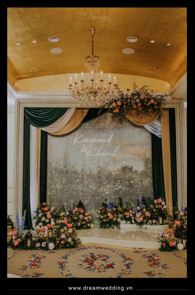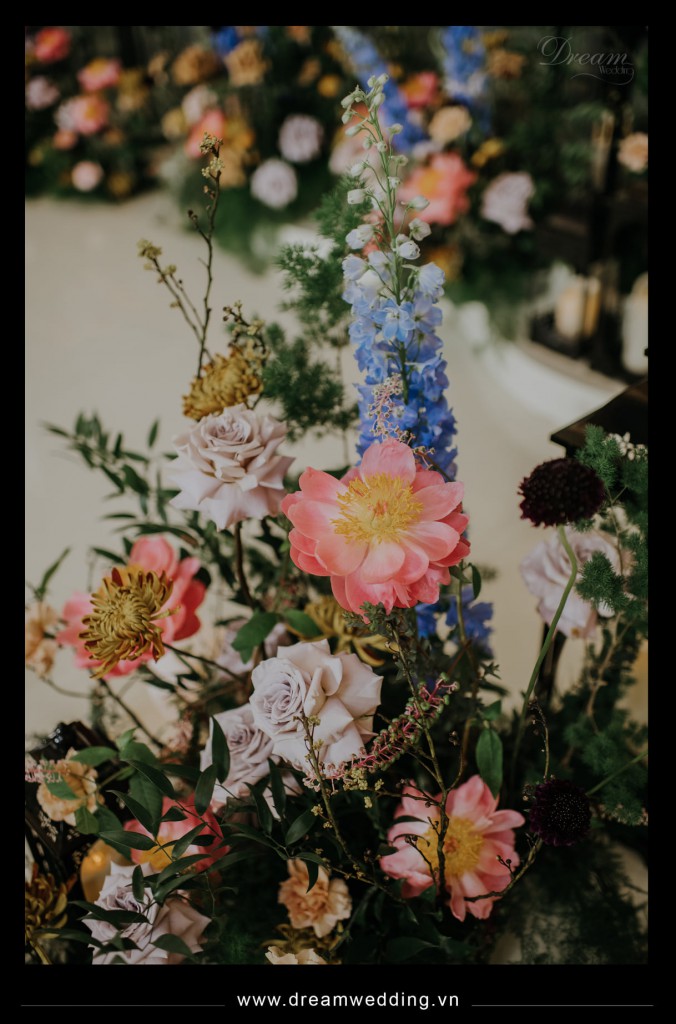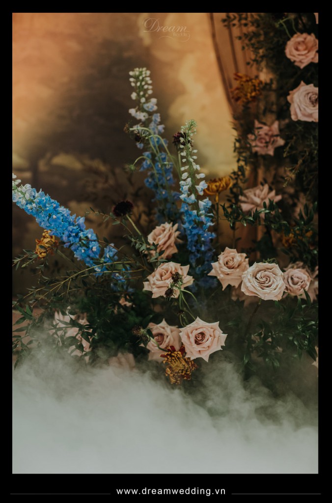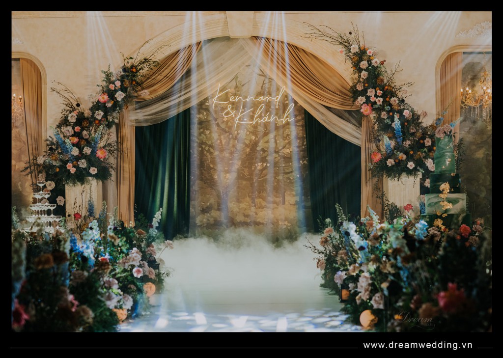 Trong tiệc cưới của CD Khánh & CR Kennard được Dream Wedding thiết kế dựa theo sự kết hợp của 2 tông màu trên, đem lại không gian cưới thật lãng mạn và ấn tượng
