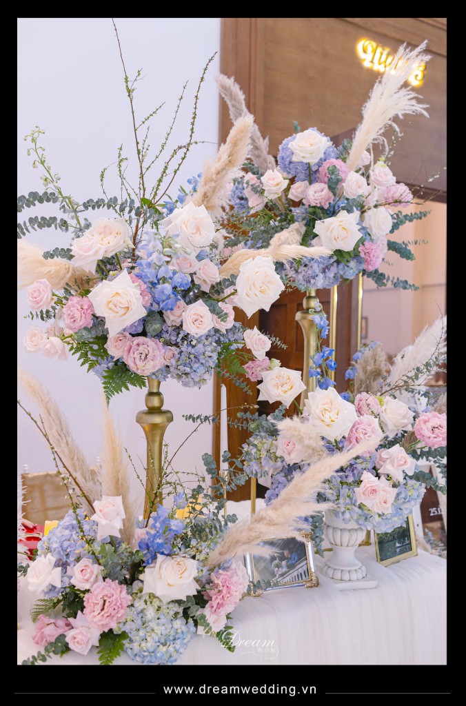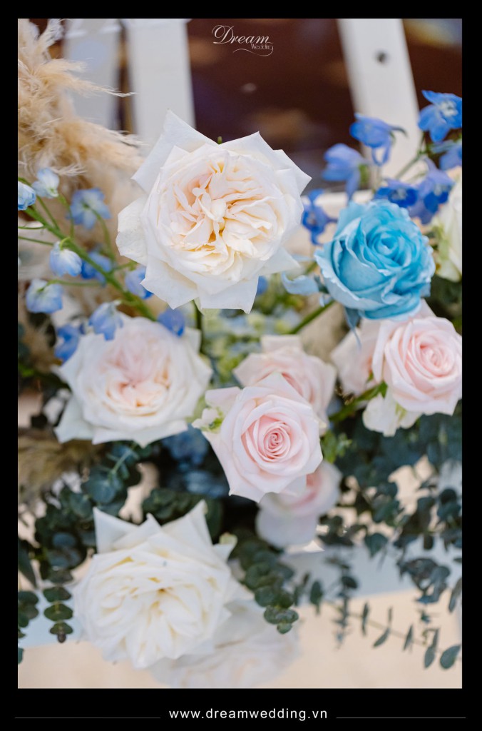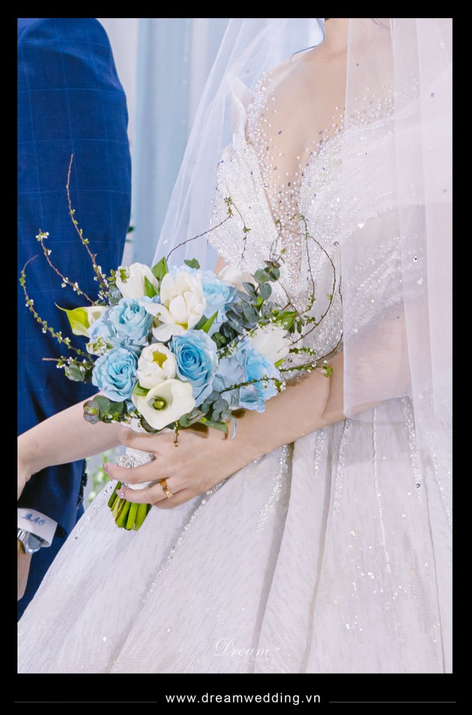 Màu xanh dương trong đám cưới mang theo ý nghĩa sâu sắc trong tình yêu, sự thanh lịch và sự thăng hoa. Nó biểu thị sự trưởng thành và sự ổn định của một mối quan hệ, cũng như sự tự do và niềm hy vọng trong tình yêu. Màu xanh dương cũng biểu hiện sự cần bằng và sự hòa hợp giữa hai người. Bằng cách sử dụng màu xanh dương trong đám cưới, Dream Wedding đã tạo ra một không gian đầy thanh lịch, thăng hoa và cảm xúc yêu thương của CR Phi Bảo và CD Lan Anh được tổ chức tại Pavillon Wedding Center.