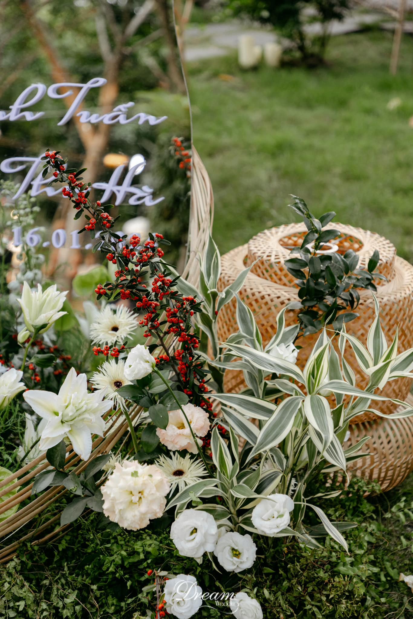 Khác biệt với những cặp đôi khác, lễ cưới của Tuấn & Hà được diễn ra ngay tại vườn nhà mình - Một không gian xanh mướt, đa dạng những loài cỏ cây và hoa lá đang vươn mình đón chút nắng chiều xuân như báo hiệu cho một khởi đầu mới đầy viên mãn của cặp đôi. Và ngày hôm ấy, tất cả mọi thứ đều trở nên thơ mộng và tuyệt đẹp đến hoàn hảo. Có chăng, niềm hân hoan đã reo ca và nở rộ trong mỗi trái tim của những vị khách mời với cái nhìn đầu tiên.