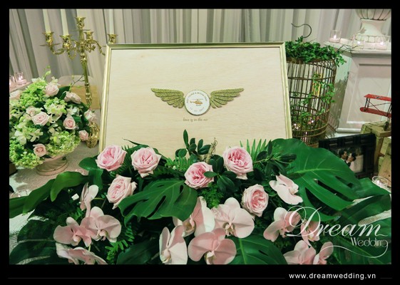 Trang trí tiệc cưới, trang trí đám cưới tại Vũng Tàu - hoa tươi và các phụ kiện trang trí trên bàn ký tên