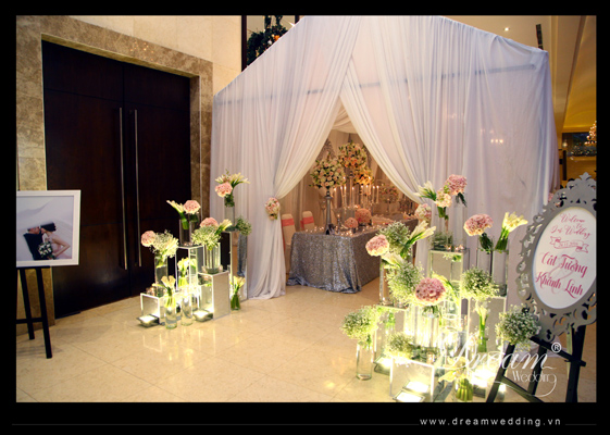 Trang trí tiệc cưới tại White Palace, trang trí đám cưới - trang trí khu vực bên ngoài lối vào không gian đón khách