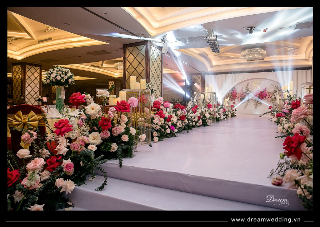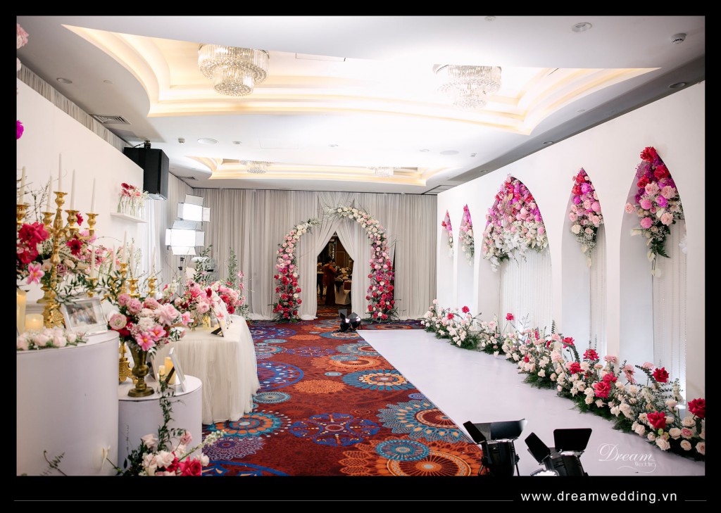 Trang trí tiệc cưới tại Windsor Plaza, tiệc cưới tại Windsor, trang trí bàn ký tên, phông chụp hình, lối đi, sân khấu tại Windsor Plaza, Dream Wedding