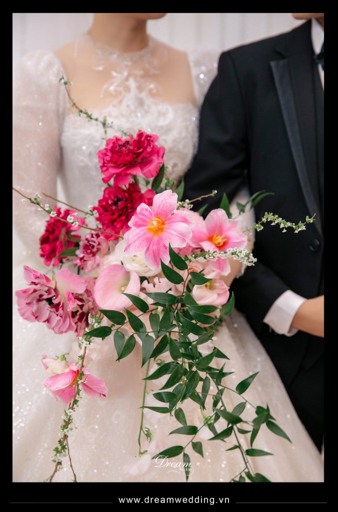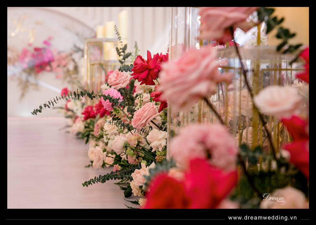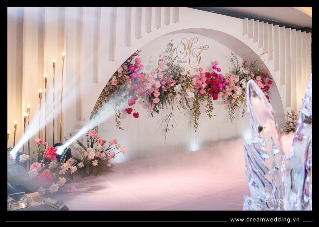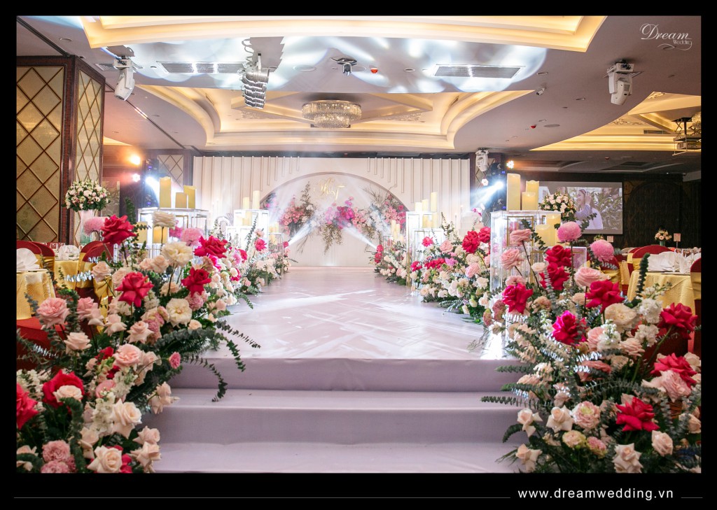 Lễ cưới của CR Chí Kiệt & CD Ngọc Trâm tổ chức tại nhà hàng tiệc cưới Windsor Plaza được Dream Wedding thiết kế và trang trí dựa theo màu chủ đạo là màu hồng.