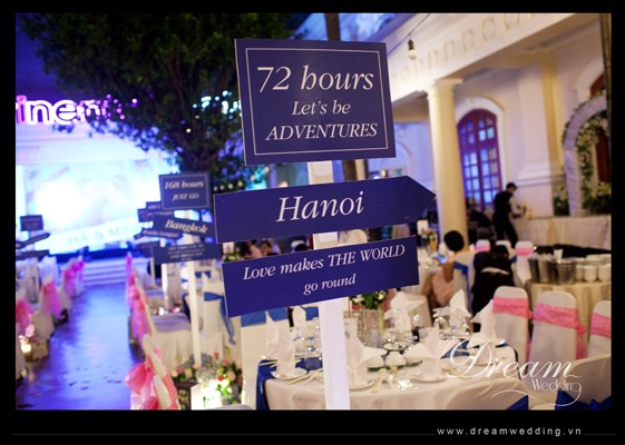 Trang trí tiệc cưới theo chủ đề du lịch tại khách sạn Continental