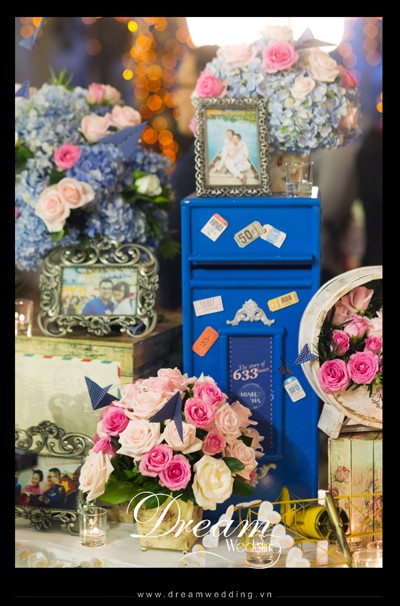 - 633 là tổng số giờ anh chị ngồi trên máy bay để cùng nhau đi du lịch, đi công tác, gặp gỡ nhau suốt những năm tháng yêu nhau. Với niềm đam mê và sở thích đi du lịch, chúng tôi tin rằng số giờ bay của anh chị không chỉ dừng lại ở đây mà sẽ còn tăng lên gấp nhiều lần. Thế nhưng, Dream Wedding chúc anh chị những chuyến bay tiếp theo không chỉ có anh chị mà sẽ có thêm tiếng cười hạnh phúc của những thiên thần bé nhỏ nữa...Sau đây mời các bạn tham khảo những hình ảnh trang trí trong đám cưới của anh, chị: