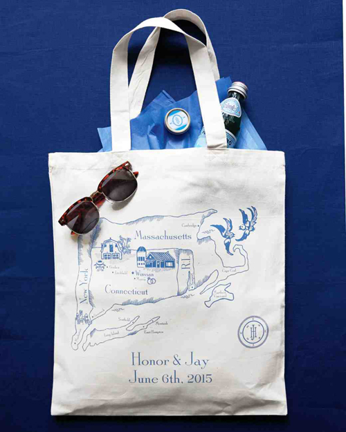 Túi quà tặng cho khách mời sử dụng nguyên liệu tái chế có chứa son dưỡng môi, nước khoáng tinh khiết và đồ ăn nhẹ.